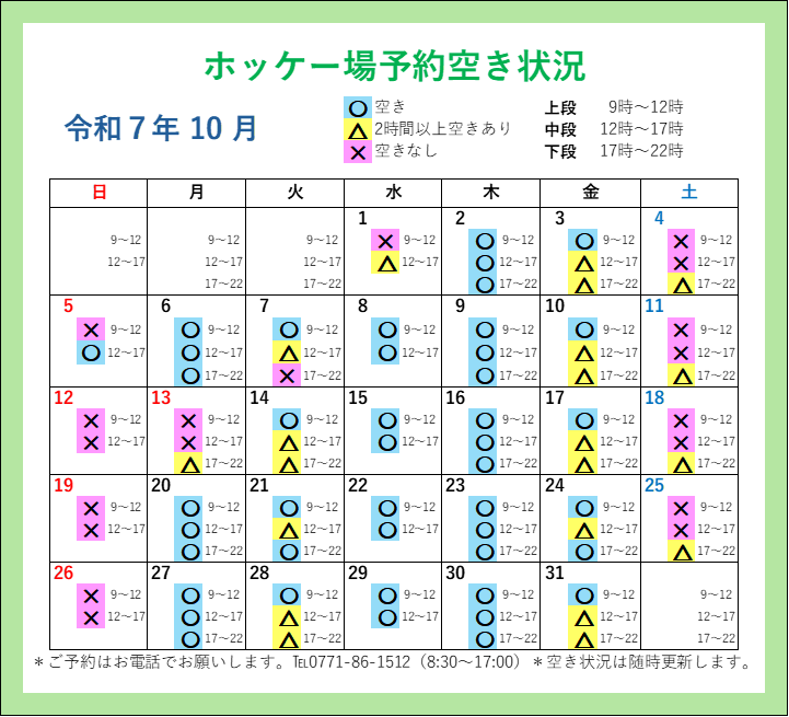 公開日時: 2025年10月3日721 × 655 (【11/2更新】人工芝ホッケー場 予約空き状況(2025年11月〜2026年2月))